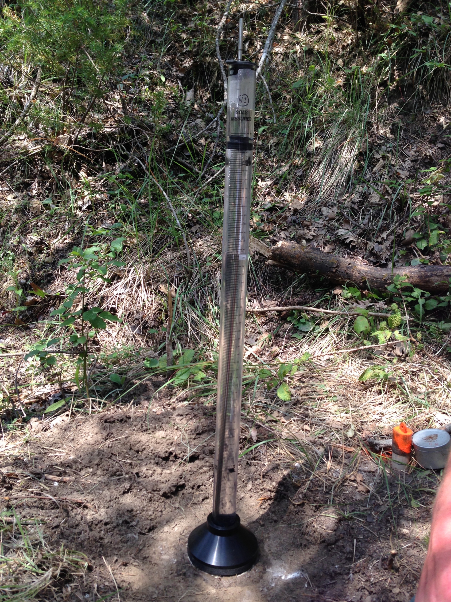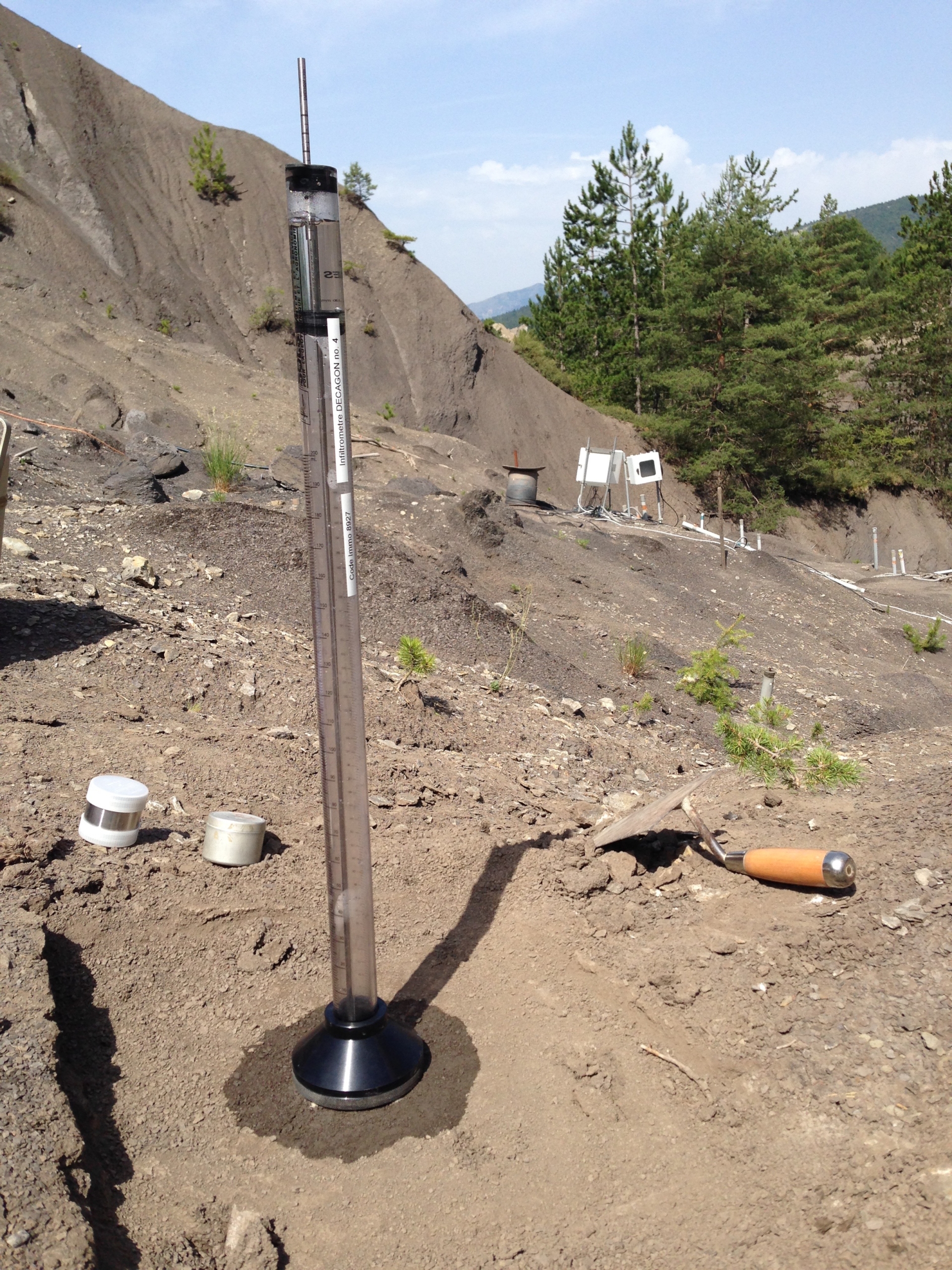 Perméamètre à succion de terrain pour la mesure de la perméabilité d’un sol marneux et cylindre de prelevement de sol (bassin versant de Draix, ORE Draix-Bléone)