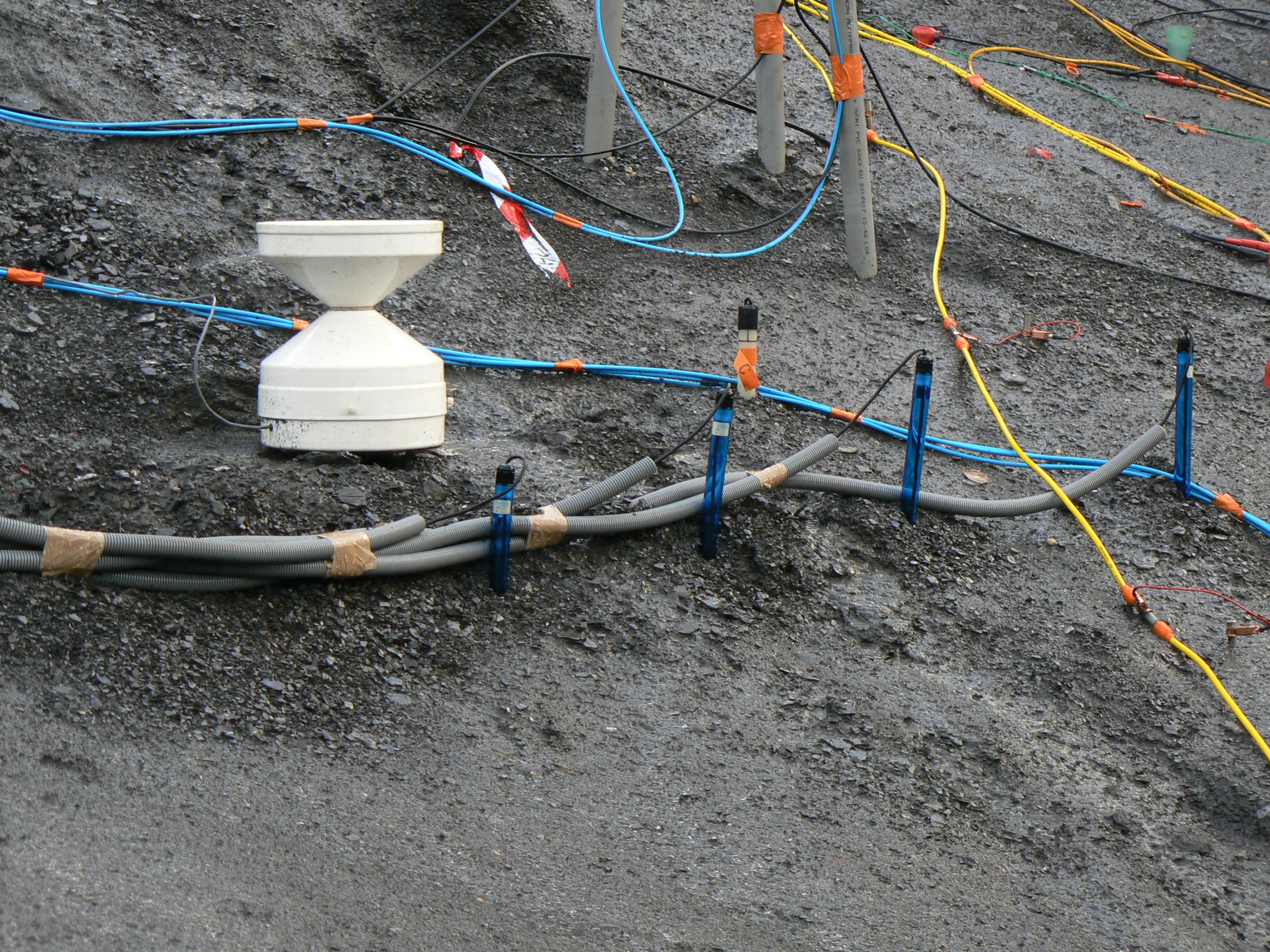 Pluviographe à auget, tensiomètres UMS (suivi en continu de la pression/succion d’eau dans le sol) et installations pour tomographie resistive en continu : étude des processus d’infiltration dans un regolith marneux (bassin versant de Draix, ORE Draix-Bléone).