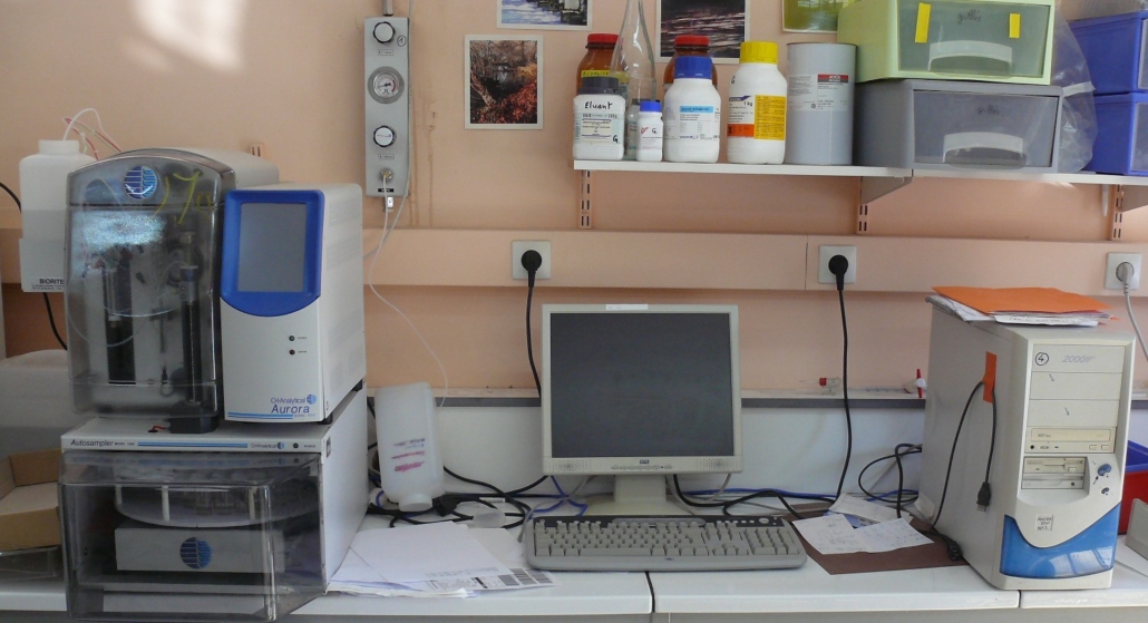 Postes pour les mesures géochimiques par chromatographie liquide (concentrations d’anions et cations) et dosage du carbon organique total (TOC).
