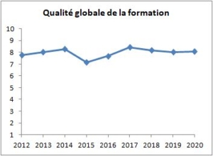 L’équipe pédagogique du Master HSE réalise des enquêtes auprès des étudiants 6 mois après l’obtention de leur diplôme de M2. Les questions portent sur la formation et sur l’insertion professionnelle. Les graphiques ci dessous synthétisent les résultats sur les promotions 2012-2020