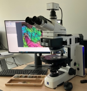 Microscope pétrographique pour l’observation des lames minces des roches.